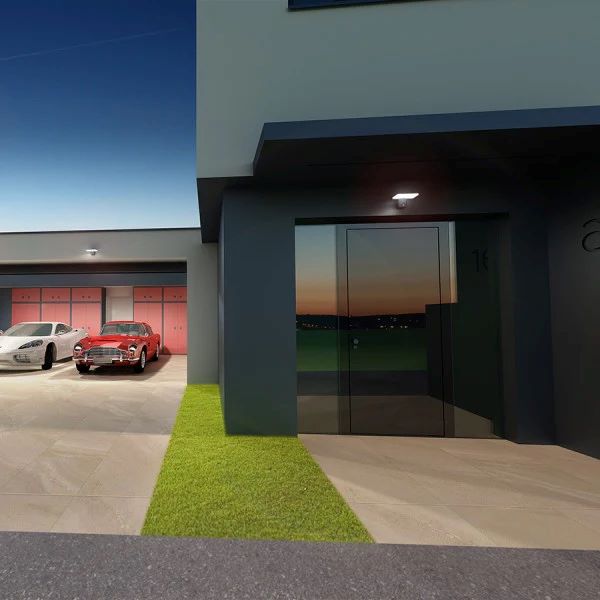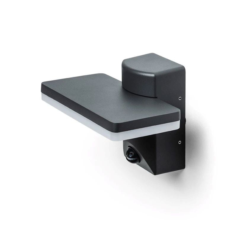Aplica LED exterior cu senzor PIR,aluminiu antracit, pentru iluminare descendentă printr-un capac inferior de culoare opal.