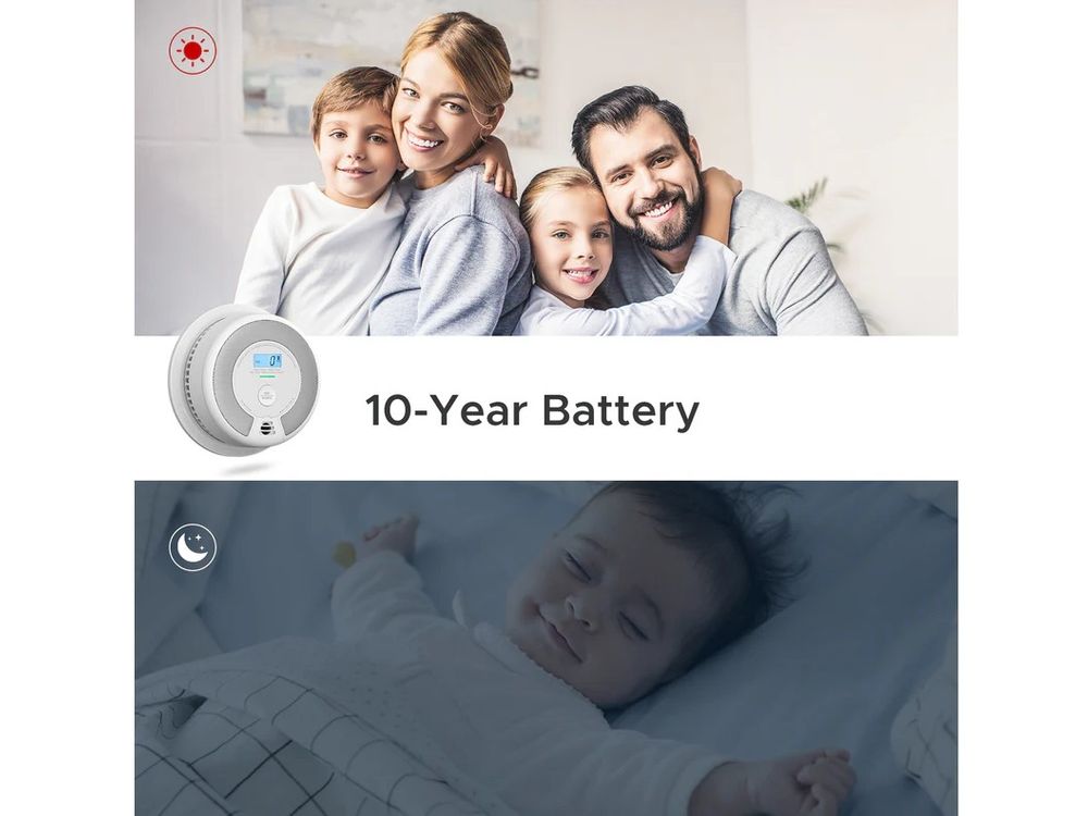 ✅ Detector 2-în-1: fum + monoxid de carbon